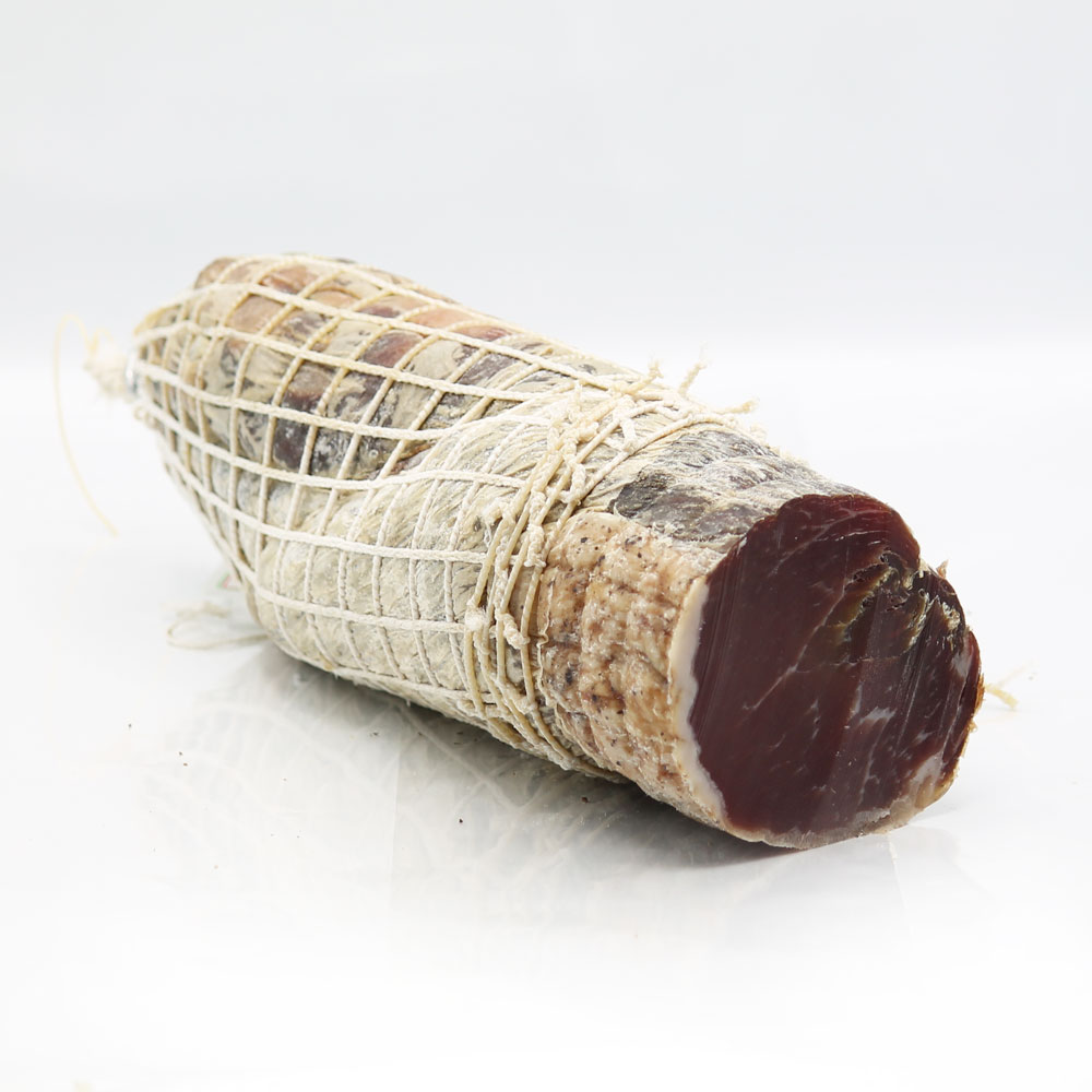 Il Lonzino Magro de Il Negozio di Mamma deriva dal lombo del maiale disossato, che dopo l’insacco viene lasciato per un breve periodo di fronte ad un camino, che gli conferisce un leggero tocco di affumicatura. Magrissimo al taglio, è stagionato in cantina per almeno 4 mesi e sottoposto a salatura e speziatura che gli conferiscono il sapore caratteristico.