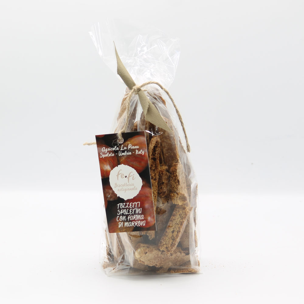 I tozzetti spoletini della Biscotteria Artigianale Fe.Fi, a km zero e con una grande attenzione alla scelta degli ingredienti per creare un prodotto di altissima qualità, ottimo nel gusto e perfetto dal punto di vista nutrizionale; sono realizzati con farina di castagne, che ha ispirato numerose ricette della tradizione popolare, quando il castagno veniva chiamato “albero del pane”, perchè i suoi frutti erano così nutrienti da riuscire a sfamare i contadini durante i periodi di carestia o gli abitanti delle zone in cui i cereali scarseggiavano.